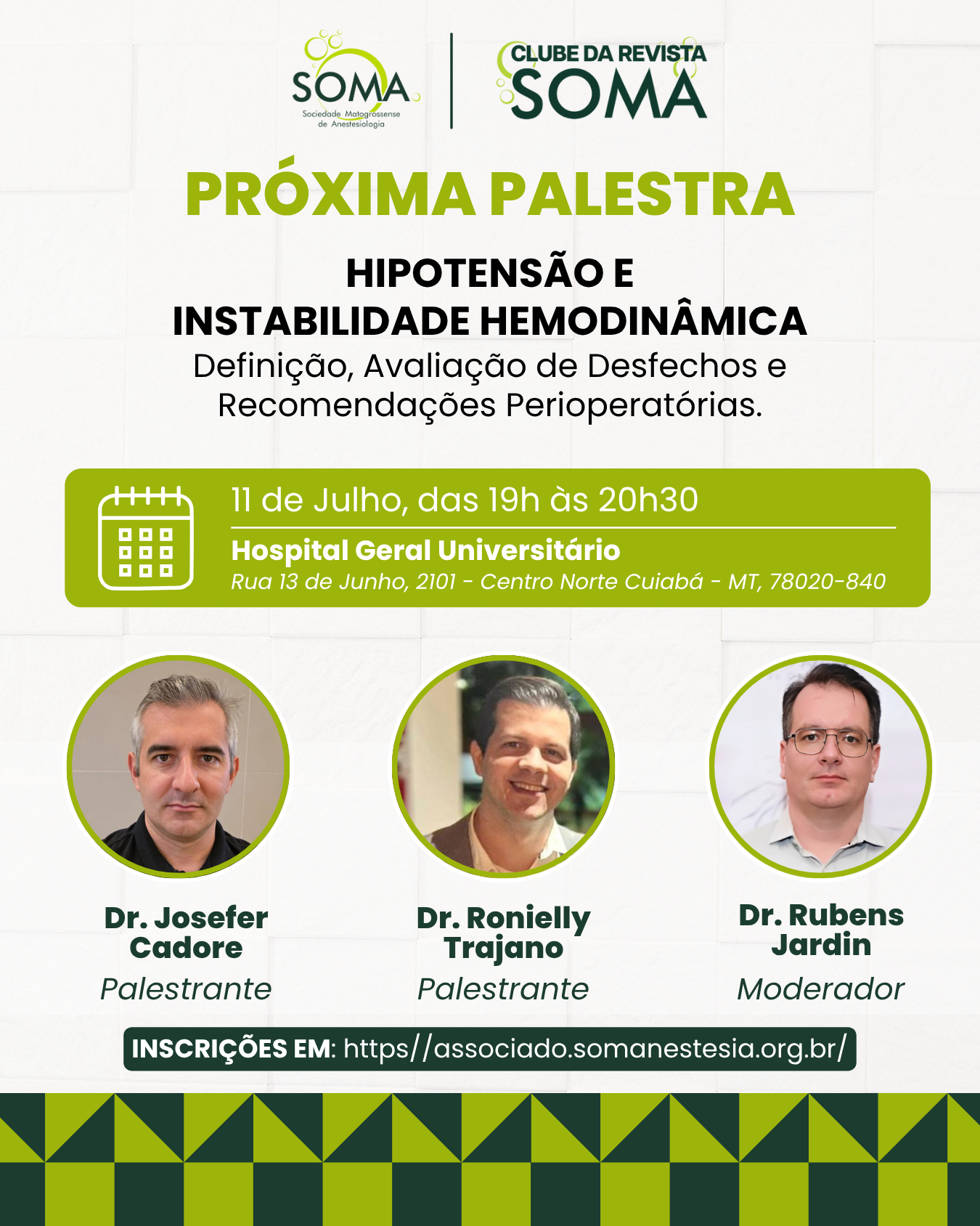O tema da vez aborda um dos maiores desafios no centro cirúrgico: “Hipotensão e Instabilidade Hemodinâmica – Definição, Avaliação de Desfechos e Recomendações Perioperatórias”.